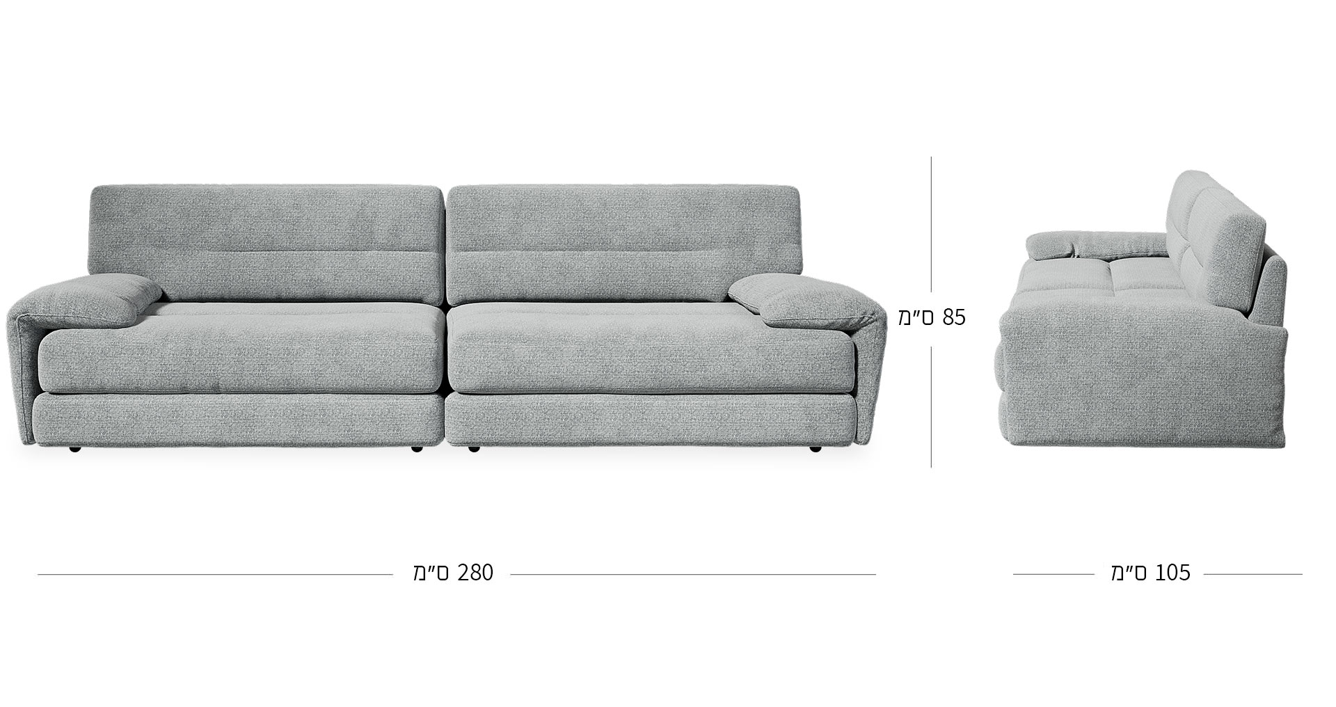 ספה הלסינקי 280 ס"מ בגוון אפור צ'אצ'ה